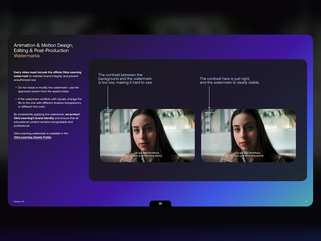 Okta Learning produces educational content at scale across teams, regions and time zones. And like most things that grow organically, parts of the system made sense… and parts made sense only to the person who created them. Some guidelines existed. Some templates existed. Some workflows existed. Just not always together. My role was to clean it up and design something that actually works. I built a practical content system combining writing structure, visual styling, motion standards, typography rules and file organization – plus reusable templates so teams wouldn’t have to reinvent everything every time they opened a new file. The goal wasn’t to add more rules. It was to remove friction and make consistency the default. Today, the system is used by multiple teams across the organization globally, helping standardize production while still leaving room for flexibility. Less guessing. Fewer “which version is final?” moments. More cohesive learning experiences.